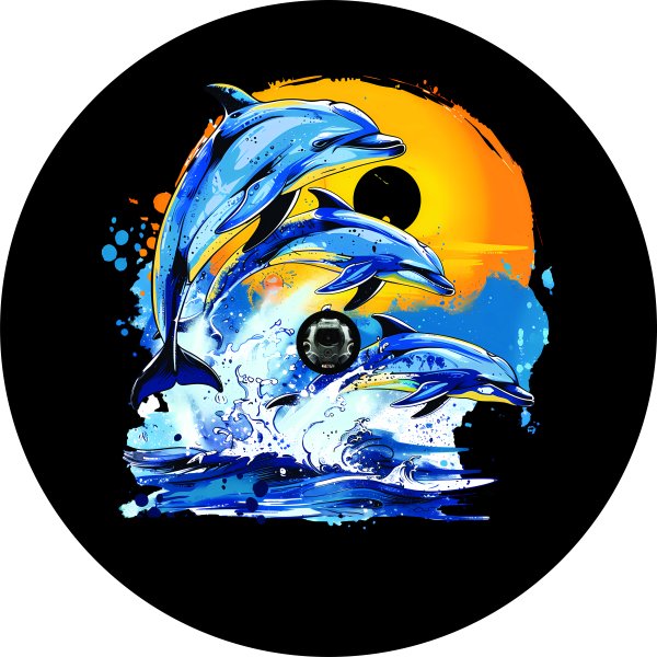 Our Dolphins in the Sun tire cover is hand-made in the USA by Custom Grafix. This "Dolphins in the Sun" spare tire cover is printed on a heavy-weight Automotive, Marine grade 32 ounce expandable vinyl. The tire cover is held on by a strong shock cord sewn into the back edge of the spare tire cover. A state of the art printing process utilizing UV resistant inks ensures that the logo is more detailed and durable to withstand direct sun light and weather conditions and look great year after year. Each cover is made to order to fit tires up to 37" for an exact fit. This product is officially licensed and made 100% in the USA. If you need an exact fit wheel cover to protect your spare tire, slap one of these high quality vinyl tire covers on your vehicle or camper from Team Sports Covers!