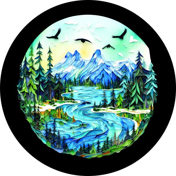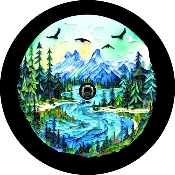Mountain River w/ Eagles Tire Cover on Black Vinyl