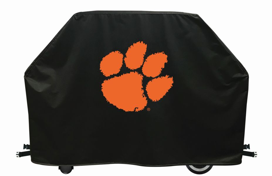 Our Clemson Tigers grill cover is designed to protect your barbecue grill from inclement weather. Our Clemson grill cover is hand-made in the USA. These heavy duty Tigers barbeque grill covers are manufactured with a commercial grade vinyl material and have the logo applied utilizing a step by step screen print process. The buckle clasp on the bottom will hold the cover in place during high winds. These Clemson BBQ grill covers are available in 60 and 72" lengths. With this deluxe "Tigers" gas grill cover you can protect your barbecue grill and keep it looking clean and new for years to come.