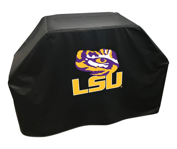 Our LSU Tigers grill cover is designed to protect your barbecue grill from inclement weather. Our LSU grill cover is hand-made in the USA. These heavy duty Tigers barbeque grill covers are manufactured with a commercial grade vinyl material and have the logo applied utilizing a step by step screen print process. The buckle clasp on the bottom will hold the cover in place during high winds. These Louisiana State BBQ grill covers are available in 60 and 72" lengths. With this deluxe "Tigers" gas grill cover you can protect your barbecue grill and keep it looking clean and new for years to come.