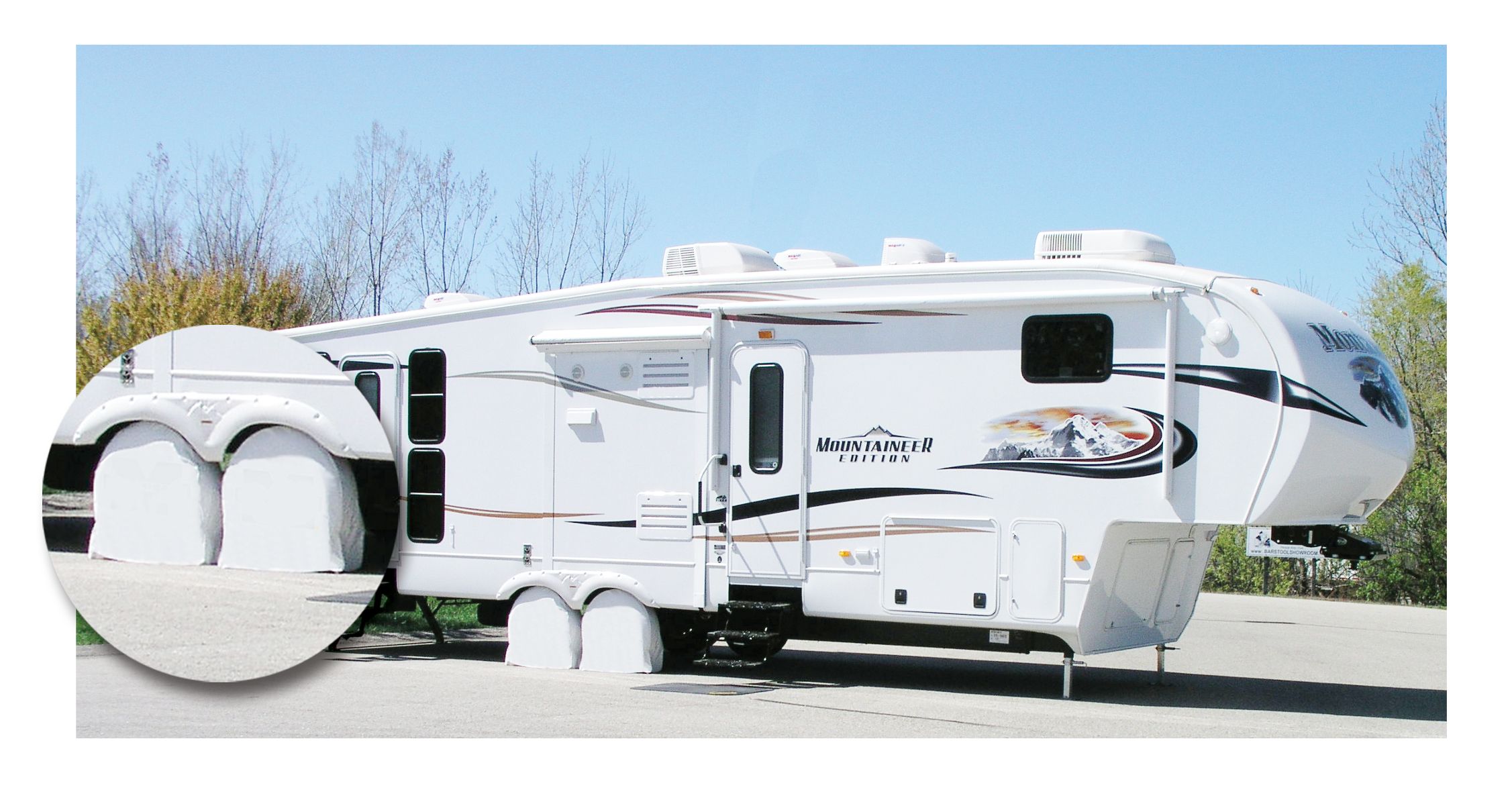 Our White RV tire shades are designed to protect your trailer or motorhome tires from the UV rays that are emitted by the sun. Our Western Kentucky tire shades are made from a commercial grade vinyl. These shades are made in the USA and can fit tires up to 37 inches. If you need tire shades for your motorhome or camper, slap some of these high quality white vinyl tire shades on your RV or camper today!