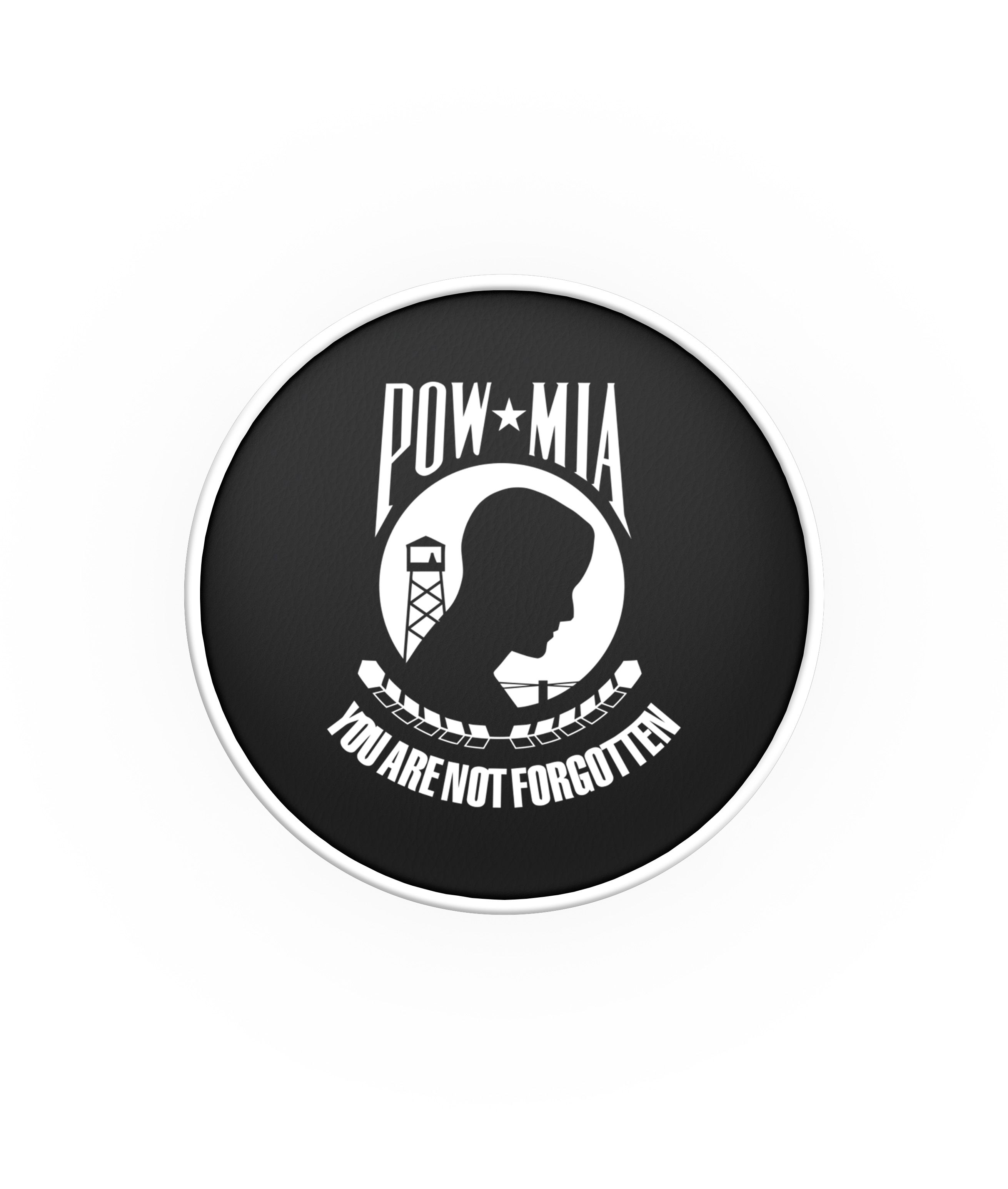 Our POW/MIA Seat Covers will simply slip over your existing cushions and held in place by an elastic band. Our POW/MIA bar stool seat covers are custom designed and manufactured in the USA. These seat covers are made of a heavy gauge vinyl and have the logo applied utilizing a step by step screen printing process. These officially licensed POW/MIA vinyl seat covers will fit bar stool seats 14" diameter x 4" thick. Make those old bar stools look new again with seat covers from Team Sports Covers.