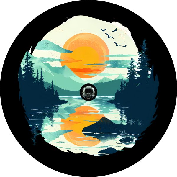 Our Two Sun Mountain Lake tire cover is hand-made in the USA by Custom Grafix. This "Two Sun Mountain Lake" spare tire cover is printed on a heavy-weight Automotive, Marine grade 32 ounce expandable vinyl. The tire cover is held on by a strong shock cord sewn into the back edge of the spare tire cover. A state of the art printing process utilizing UV resistant inks ensures that the logo is more detailed and durable to withstand direct sun light and weather conditions and look great year after year. Each cover is made to order to fit tires up to 37" for an exact fit. This product is officially licensed and made 100% in the USA. If you need an exact fit wheel cover to protect your spare tire, slap one of these high quality vinyl tire covers on your vehicle or camper from Team Sports Covers!